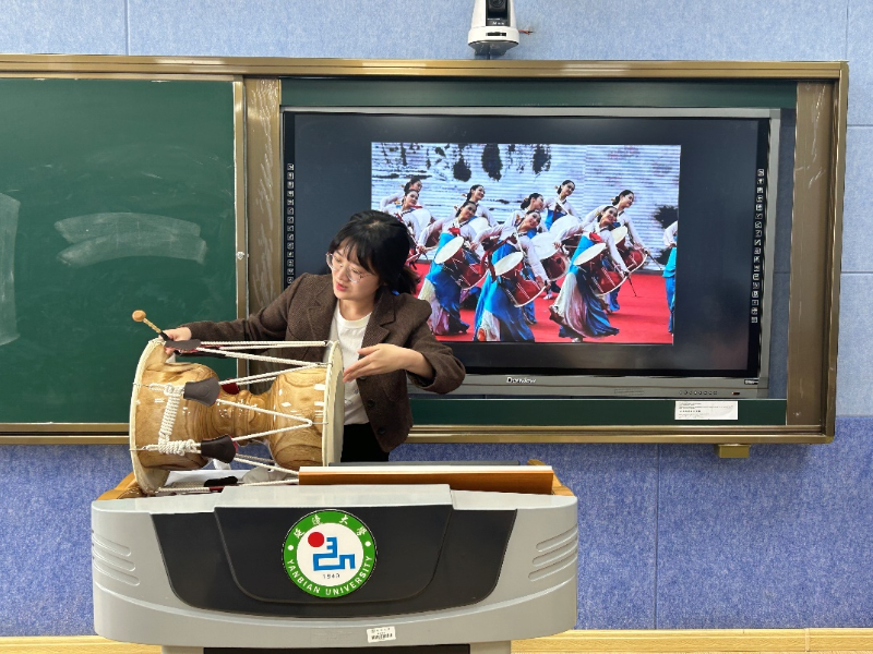 活动现场,学前教育专业的李恩进同学、唐晓晗同学、教育管理专业的马宵丽同学、董婧妍同学分别介绍了朝鲜族的传统乐器、傣族泼水节、回族的服饰文化、壮族的习俗等。