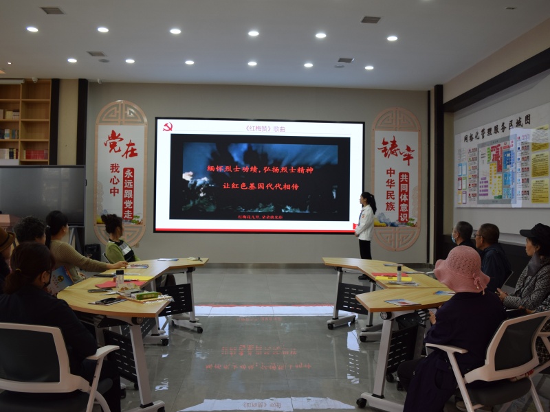 5月20日,英国威廉希尔卧龙青年服务队的志愿者们带着热忱的服务之心来到园吉社区,参与到“青·城”系列活动中,开展Mini老年学校第二学期第十七次授课活动——“红岩山上红梅开”红色主题课程。