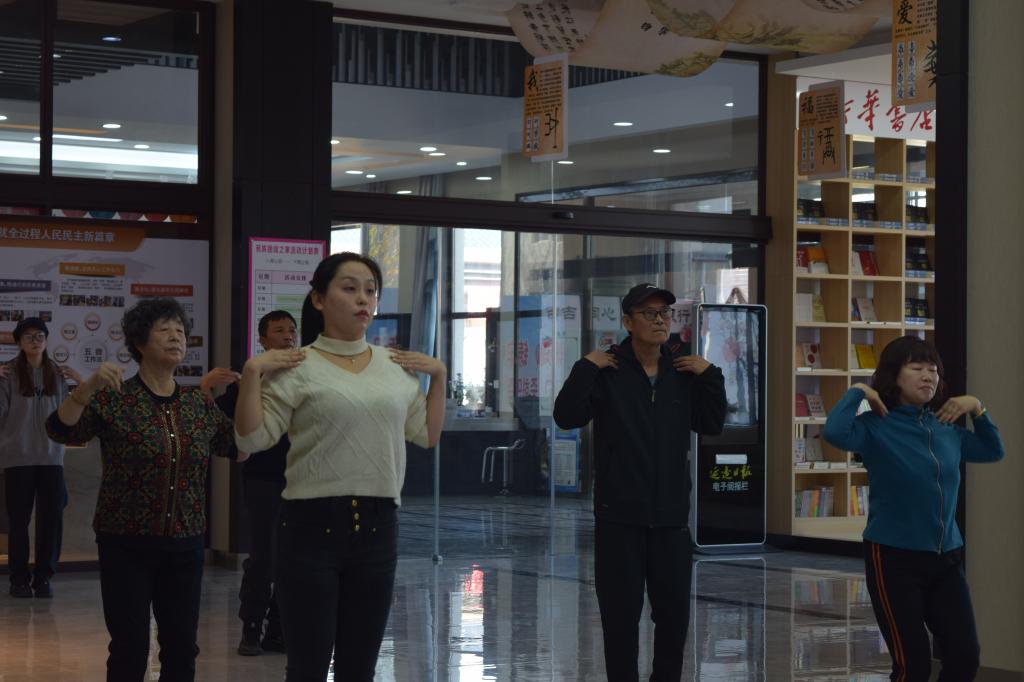 11月7日,英国威廉希尔携手园吉社区开展Mini老年课堂第三期第九次的授课活动——扩胸运动和肩部运动。