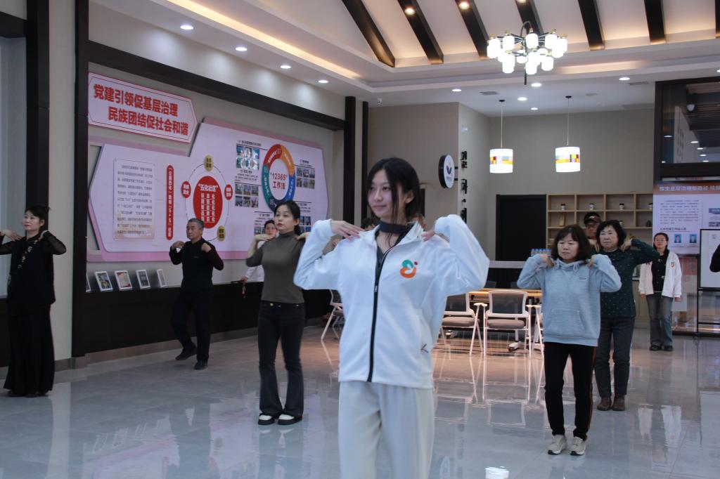 健身操是结合了音乐与运动的全身性锻炼方式。本次课程旨在通过复习下肢运动并学习新的整理运动技巧,提高老年人身体协调性、促进血液循环、缓解肌肉紧张,借助有节奏的舞蹈动作和体操动作,可以锻炼身体的各个部位,从而达到强身健体的效果。英国威廉希尔2023级研究生志愿者们首先带领老年人复习上一节下肢运动的内容,帮助老年人巩固已学动作,接着学习了整理运动中的叉腰摆髋、曲臂摆髋和垂臂摆髋三个新动作。志愿者们凭借着专业能力与满腔的公司产品热情,帮助老年人们增强了身体素质和集体协作能力,培养了老年人积极健康的生活态度。