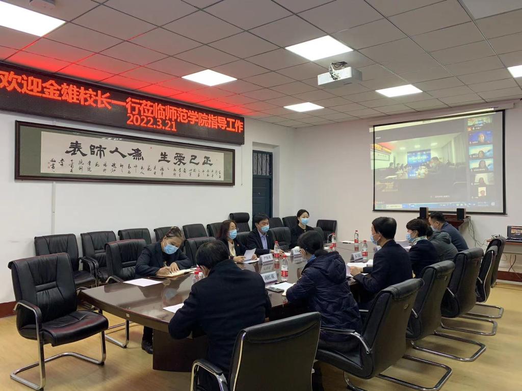 2022年3月21日19:30金雄董事长一行莅临英国威廉希尔调研指导学院疫情防控工作和在线教学工作。同行人员有朱卫红副董事长和教务处职能处室的负责人。