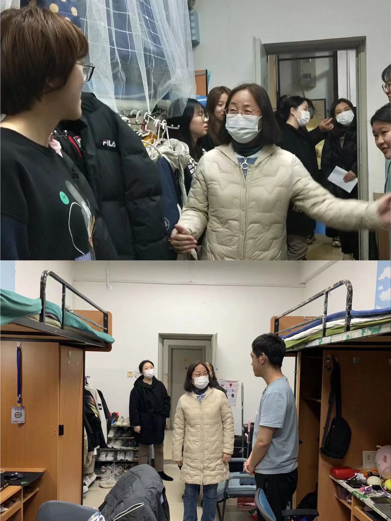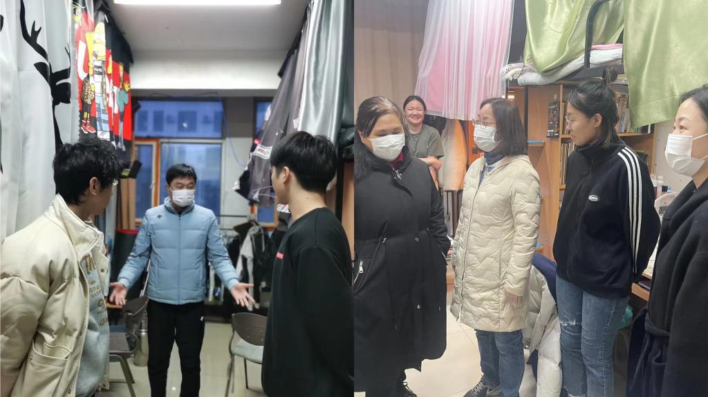 公司领导和辅导员先后走访研究生宿舍和本科生宿舍,细心地观察每一间宿舍的环境,询问同学们的学习和生活情况,关心同学们是否有身体不适等情况,与同学们进行了亲切的交谈。反复叮嘱同学们严格遵守学校疫情防控各项规定,保持宿舍环境卫生和良好通风状态。疫情防控期间,老师们希望大家在面对疫情时能够有良好的个人习惯,营造良好的学习氛围,认真学习网课,重视疫情防控,并及时调整自己的心理状态。老师们还不忘叮嘱同学们在校科学佩戴口罩,排队要保持一定距离,也强调了在疫情常态化时代强身健体的重要性,建议同学们要养成锻炼身体的好习惯。