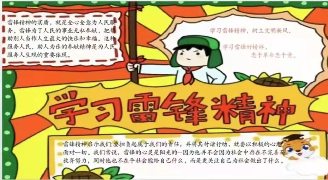 进入雷锋活动月以来,同学们在通过各种形式认真宣传和学习雷锋同志的光辉事迹的同时,也正确认识到了雷锋精神的实质,“人的生命是有限的,可是,为人民服务是无限的,我要把有限的生命投入到无限的为人民服务之中去。”尽管雷锋同志早已离去,但他的精神仍在薪火相传,在他身后,许许多多的人在默默践行他的信仰,他的追求。经过代代传承,雷锋精神已经成为中华民族的宝贵精神财富。