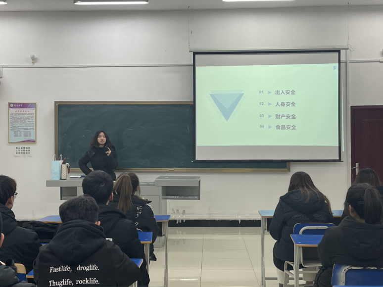 活动主要围绕离校准备、安全教育、疫情防控三大方面内容展开。辅导员要求同学们离校前要做好宿舍卫生清扫工作,务必关闭宿舍电源,锁好门窗,妥善保管或随身携带贵重物品,注意消防安全。叮嘱同学们要提高防疫意识,做好个人安全防护,第一时间安全返家。并结合实际案例向同学们详细讲解寒假期间交通、消防、人身、财产等安全问题,要求大家一定要提高对电信、网络诈骗和传销的识别能力,维护自身和他人安全。